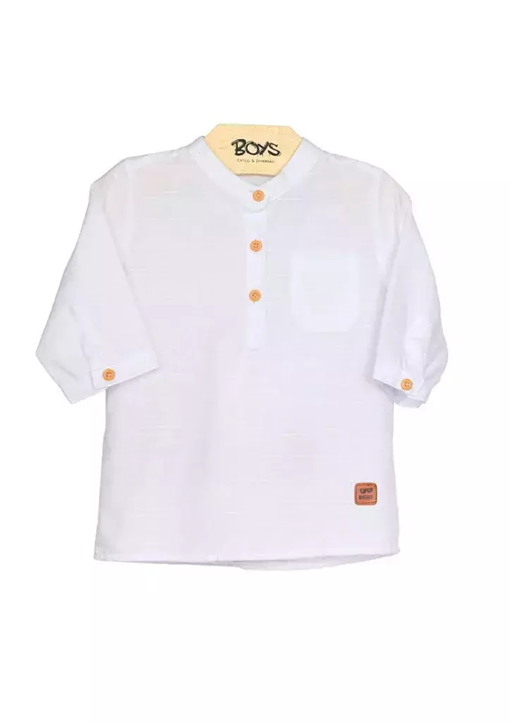 A Bata Gael é confeccionada em tecido plano branco, possui mangas 3/4 e vem com botões amadeirados, que dão um charme especial à peça.