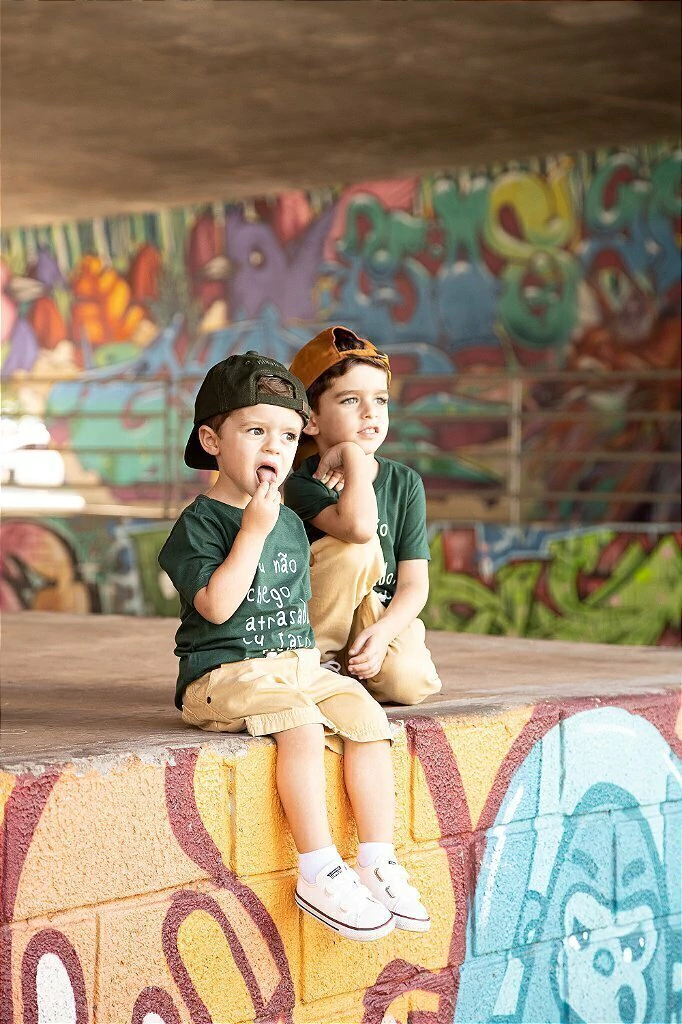 Boné de sarja verde militar com fivela de ouro-velho para regular o tamanho na cabeça.