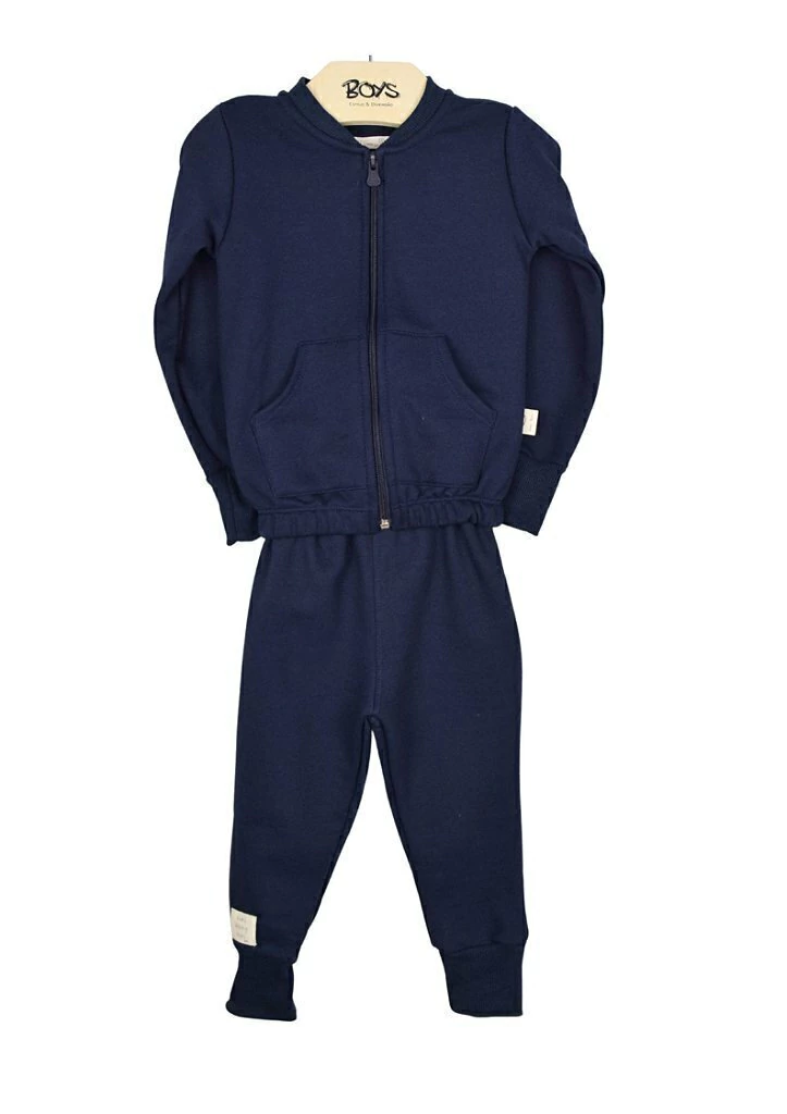 O Conjunto Bento é aquele básico de moletom flanelado com zíper frontal na cor azul marinho que toda criança deve ter!
